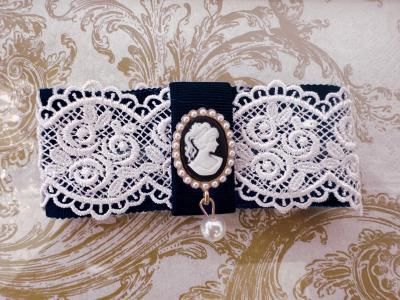 グログランリボン 薔薇レース カメオ